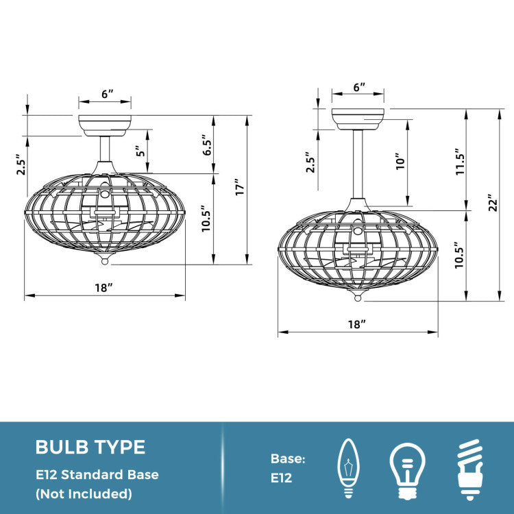 Note: Recommended to use 4 x E12 bulbs (not included)