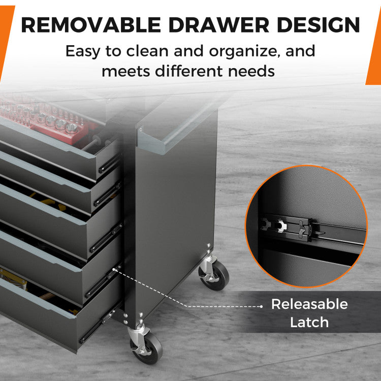 -Features 5 pull-out drawers for hand tools, power tools, and measuring tools
