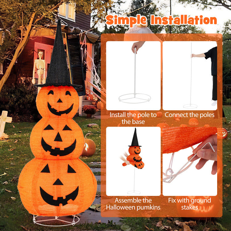 -3 stacked pumpkins with a witch hat for Halloween decoration