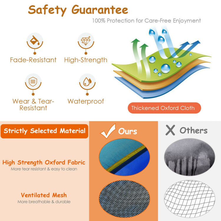 With climbing wall, long slide, ball pit pool, ball throwing area and large jumping area, the bouncing house allows children to explore more fun of various games and develop basic skills. It is made of high quality oxford cloth with mesh netting for safe experience and long-lasting service life. The package includes12 repair patches and 5 bouncer stakes to meet your different needs. You can use a blower to set up the bounce house in minutes and fix it with ground stakes. What's more, the carrying bag makes it easy and portable to carry or transport. It is perfect for backyard, living room, playground and more. Enjoy your childhood time with this cute bouncy castle!