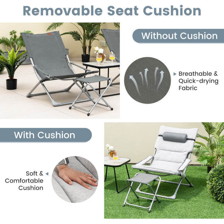 -Patio chairs feature comfortable cushions, headrest and armrests