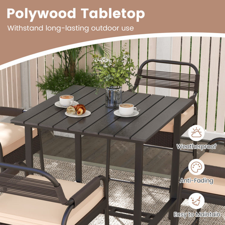 -Easy maintenance is a breeze with the weatherproof polywood tabletop