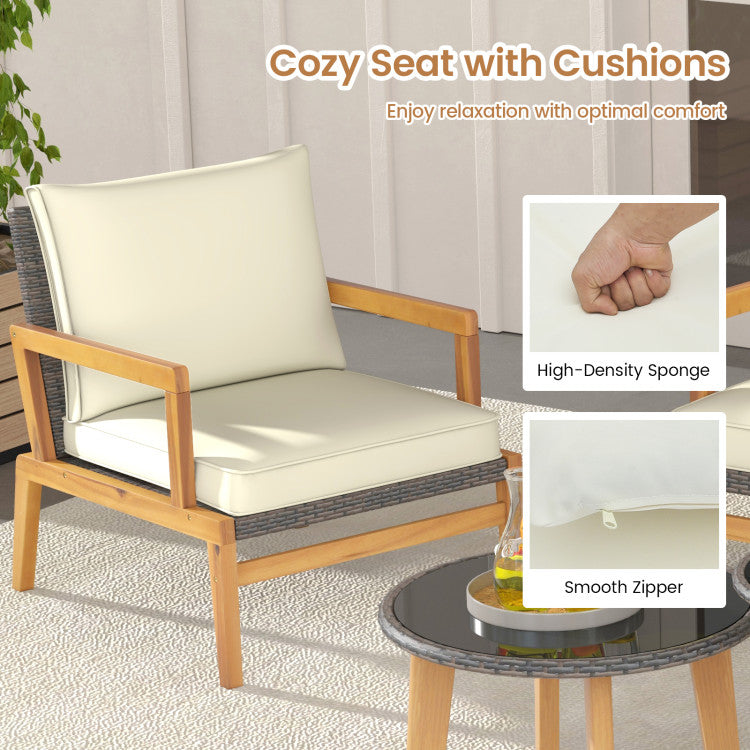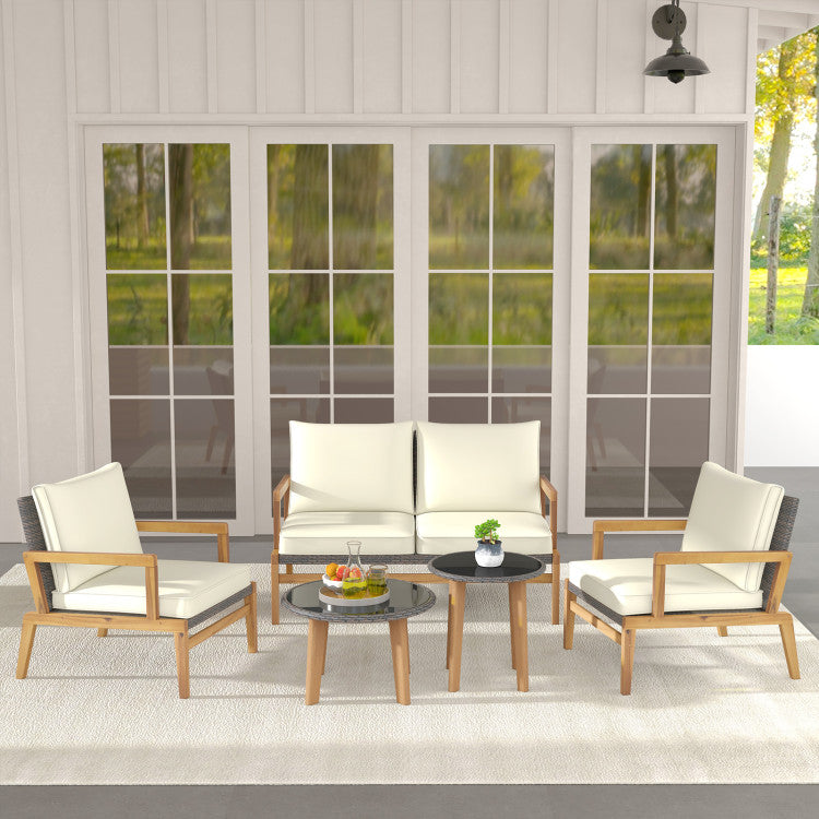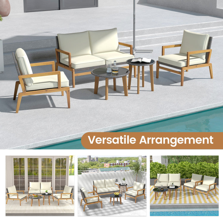 | Material | PE Rattan, Metal, Acacia Wood, Polyester, Sponge, Tempered Glass |