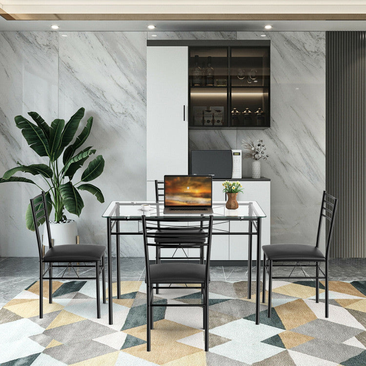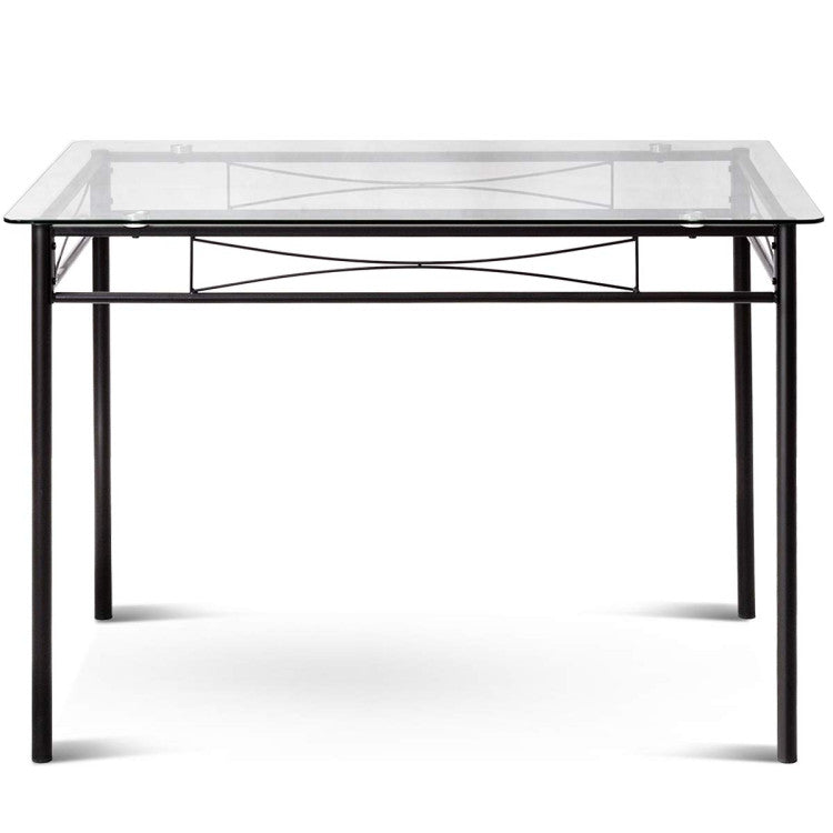 The design is simple without much decoration. It provides you a simple living environment and a comfortable and free atmosphere. It can be placed not only in the kitchen, but also in the dining room. If the weather permits, you can also move it to the yard to spend your leisure time. You don't have to worry about quality. It's made of high-quality tempered glass and metal frame that ensures long term use. And rounded corners designed to protect your children from collision.