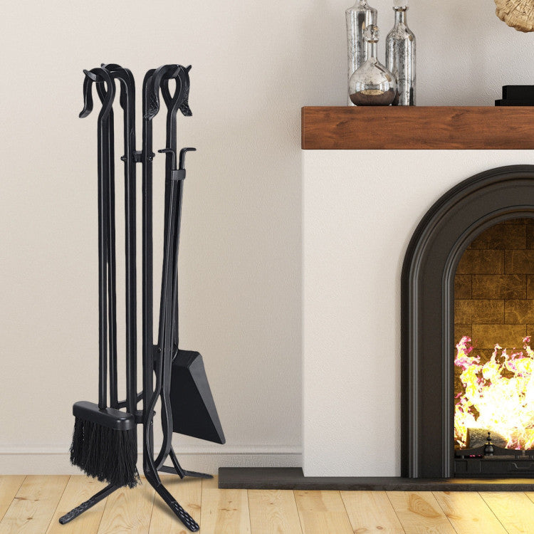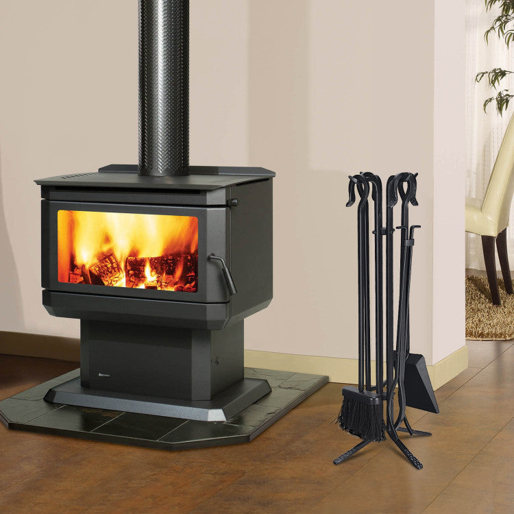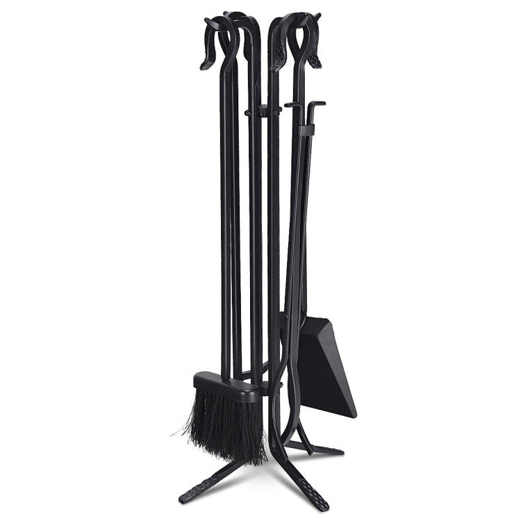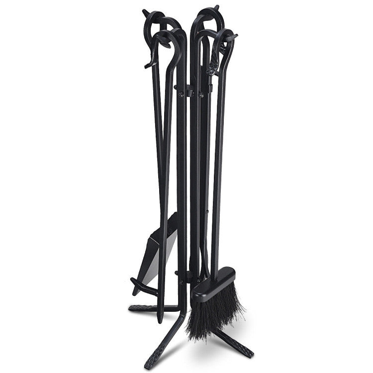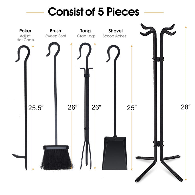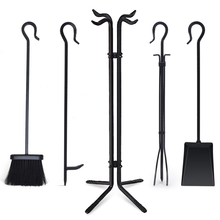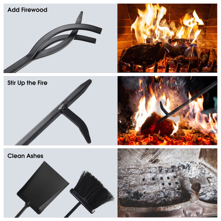 Constructed from steel, the tool set includes a base, a tong, a fireplace poker, a shovel and a brush for all of your fire tending needs. This tool set is processed with spray-painting technology, which has rust-resistance and corrosion-resistance. When you received the product you can use it directly. The fireplace accessories are designed to be sturdy and easy to use.