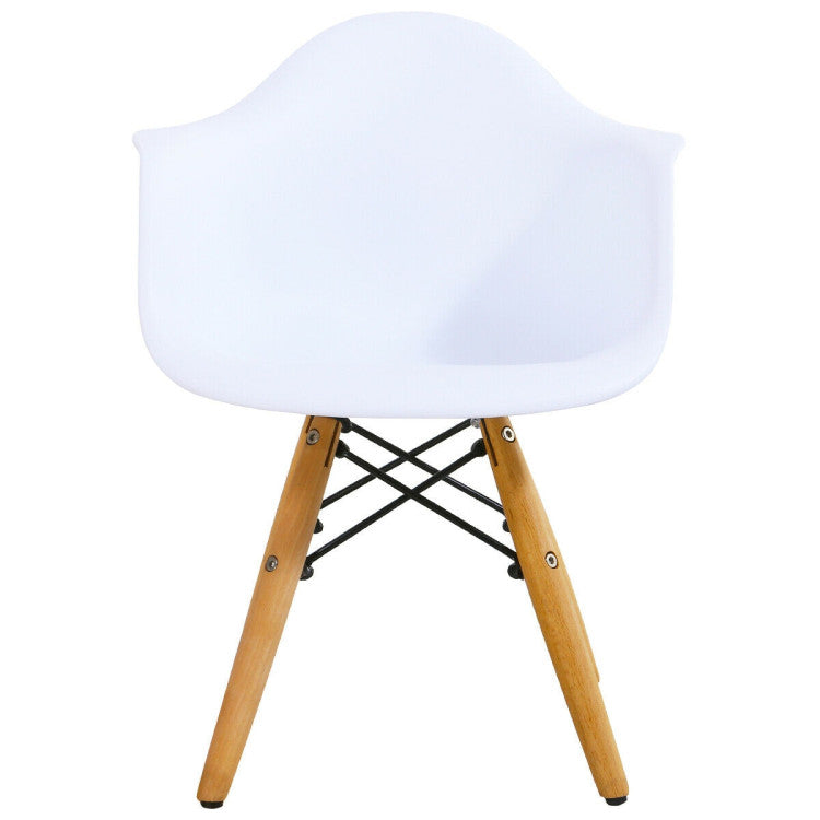 The combination of wood legs and iron frame of the base adds to the aesthetic value of the design while ensuring the stability of the set. The chairs feature ergonomic curved back, which perfectly adapts to the shape of the body. A round and smooth tabletop protect your child from harm. And non-slip rubber pads under the legs protect the floor from being scratched and add the stability.
