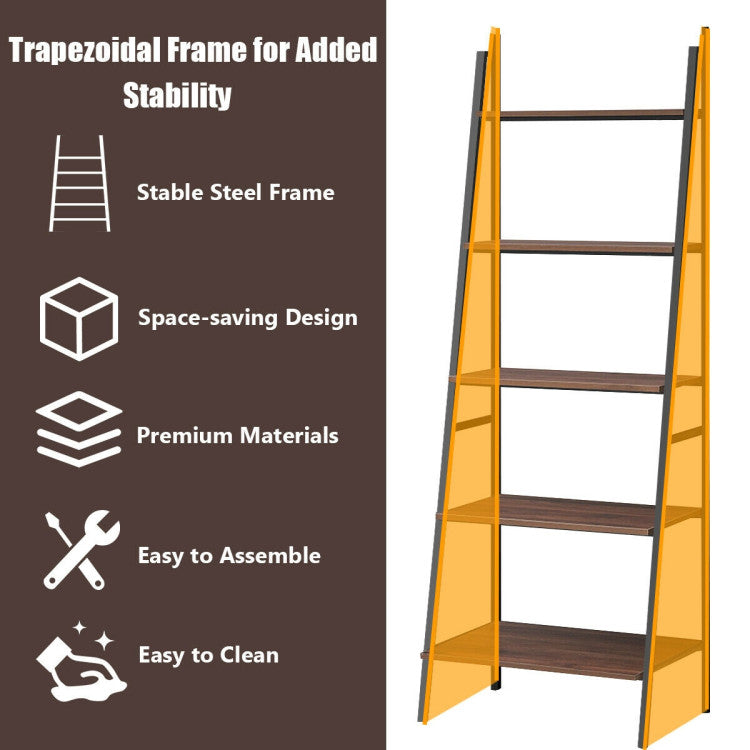 When you need more storage space and make full use of the limited space in your home, please consider our stylish 5 tiers ladder shelf.