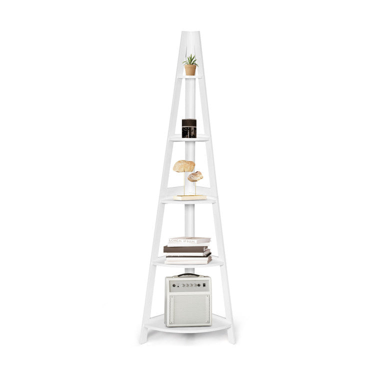 And the ladder design makes it easy for you to reach your items. The compact structure with a right-angle design seamlessly fits into the corner of your room and saves your places. With anti-tipping devices, this 70-inch-tall corner shelf gives you reassured safety. It is an ideal storage shelf, bathroom shelf, plant stand, book shelf and more, guaranteeing a multifunctional design and maintaining the style. You can have your room organized and tidy with this 5-tier corner ladder shelf.