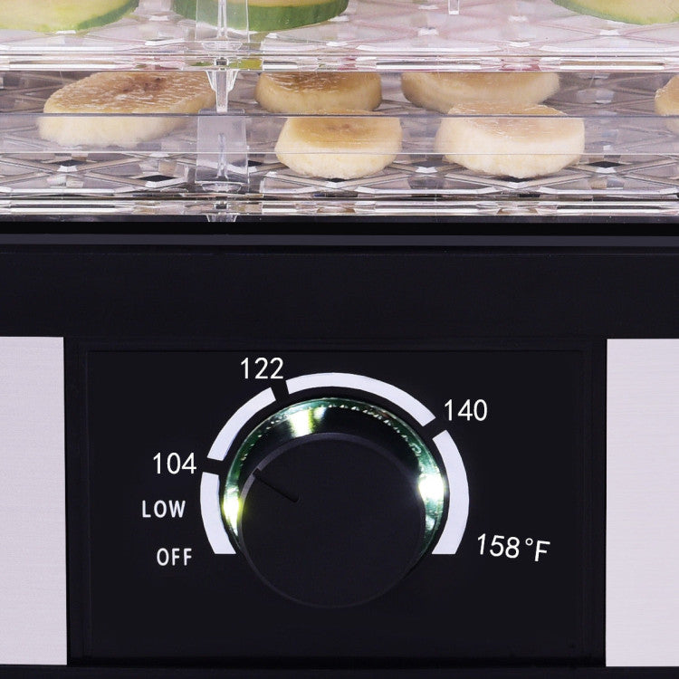 It is made of durable material. So you can use it for a long time. It can make a fast and easy way to make healthy and natural snack. The 5 stackable trays and adjustable thermostat which ranges from 104 ? to 158 ? accommodate a variety of foods. The 360-degree heat air circulation travels through each tray. It can Effectively dry the food and retain 97 percents of vitamins and minerals.