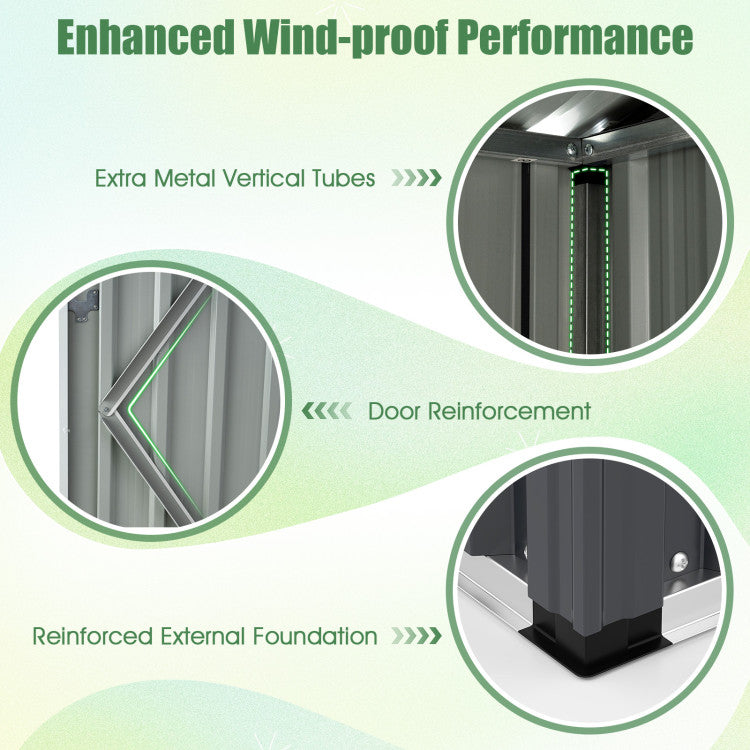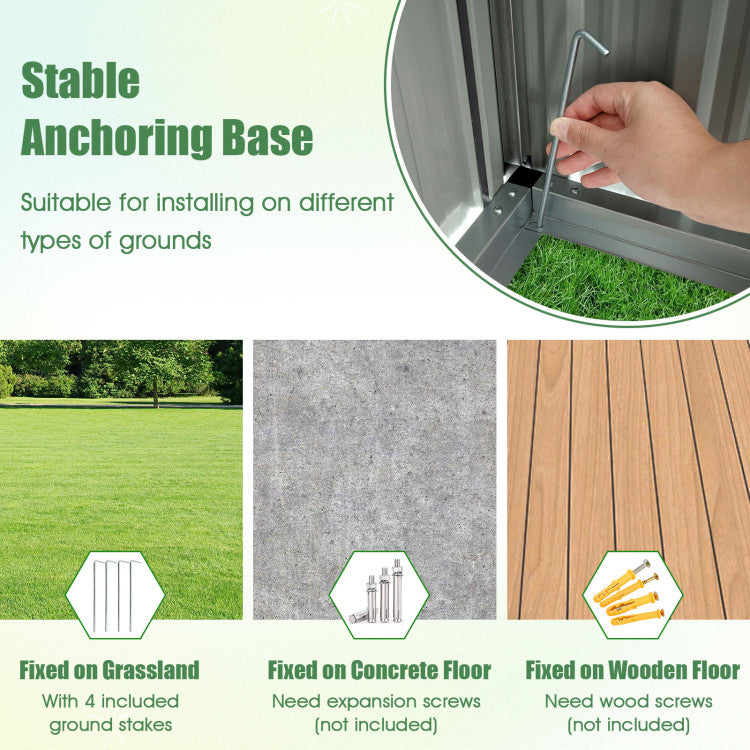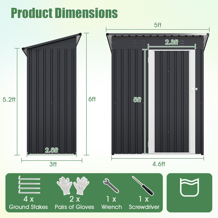 | Package Includes | 1 x Storage Shed, 4 x Ground Stakes, 2 x Pairs of Gloves |