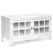 The top can support TVs up to 50 inches, and the 4 shelves help you storage necessary media or gaming devices. This TV stand is more than a TV stand, it is a piece of furniture for your home. With a clean edged top, rectangular legs, delicate glass, and classic circular handles, our distinctive TV stand creates a warm and charming atmosphere for your home or office. This TV stand is designed to blend into a variety of living and family room settings. With its casual contemporary style, this exquisite collection is a relaxed look that fits anywhere.