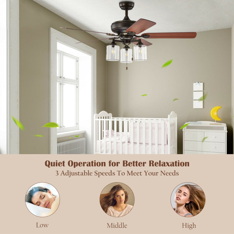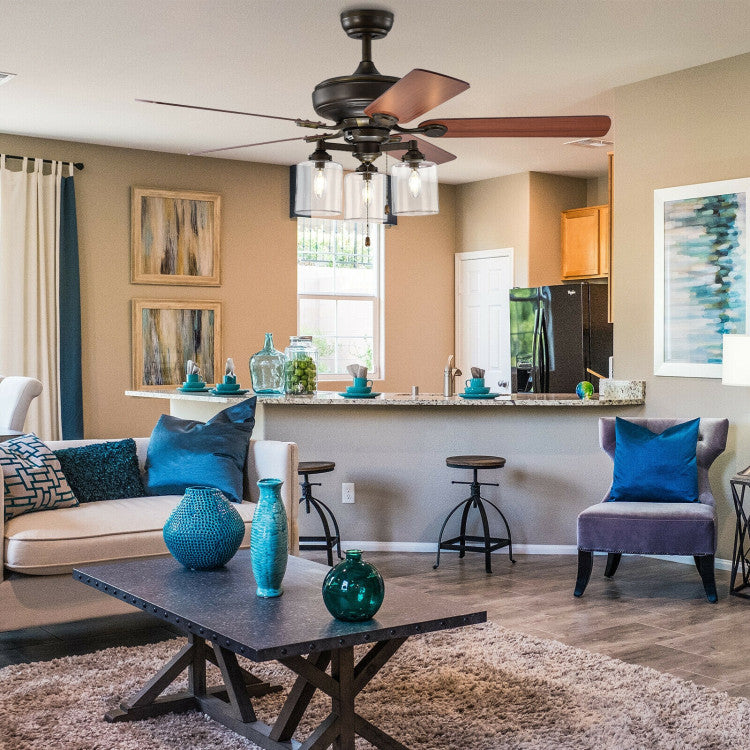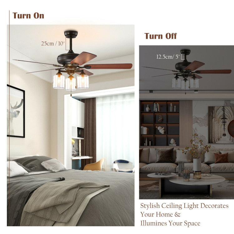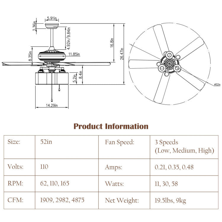 Specially designed with pull chain control, this fan is easy for you to adjust the speed and switch the light at will. Since the reversible blades, you can enjoy a comfortable air flow under the energy saving fan in summer and winter. 2 color of the wood blades offer you a choice between elegant between white oak and classic walnut, both equally complementing the different housing finishes. Its size makes it a perfect match for any room decorations, such as living rooms, bedrooms, kitchens, entertainment rooms, etc. If you are short of such versatile indoor furniture, the reversible ceiling fan will be a great choice!
