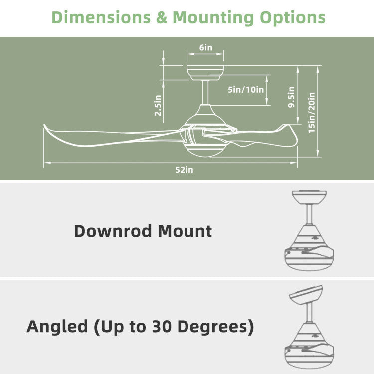 This 52" ceiling fan nicely fits small/medium/large rooms to blow evenly airflow and bring lightness. With multiple wind speeds and time settings available, you can freely adjust the fan based on your real needs. A handy remote control is included to make your control easier and more convenient. Thanks to its reversible DC motor, the fan will make your room cool in summer and warm in winter. As the blade is designed in a classic walnut way, it can also bring a touch of elegance to your room. The ceiling fan will surely be a perfect companion in all seasons with you.