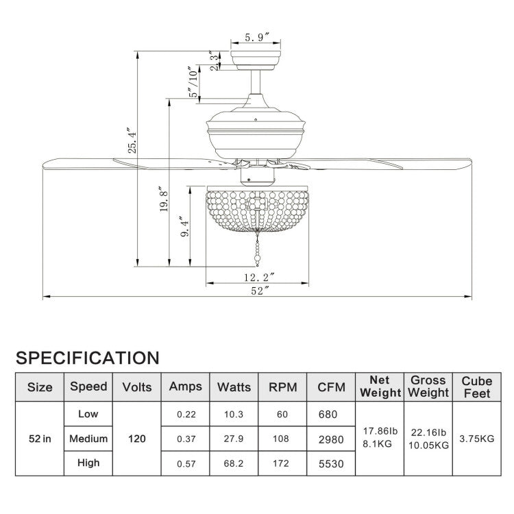 This 52’’ ceiling fan with beads lampshade and retro appearance makes an eye-catching addition to your home décor!