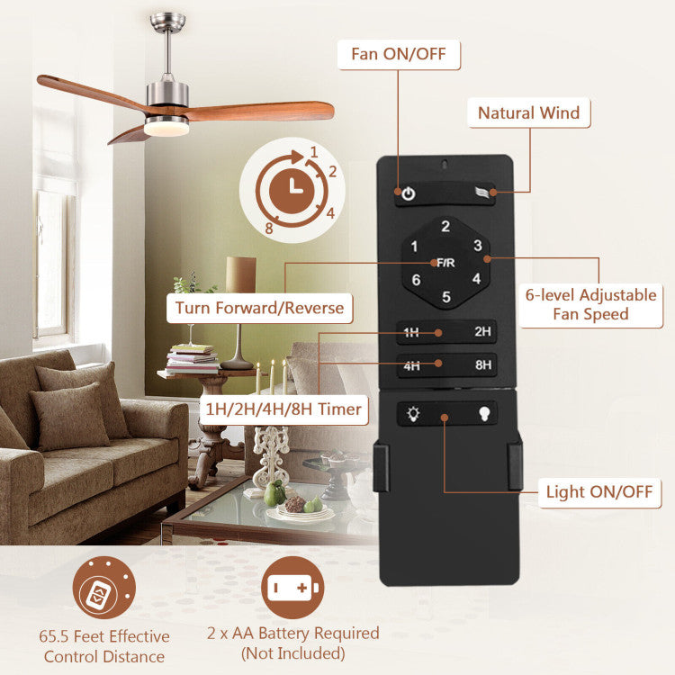 During the hot summer, this ceiling fan creates downward airflow to provide you with a cooling effect. When it comes to winter, you can press the "Turn Forward/Reverse" button to change the downward airflow to upward airflow. And the 3-level adjustable LED light will light up your night. All of these functions can be achieved by remote control. The handy remote control also features 1h/2h/4h/8h timer and 6-level adjustable wind speed that facilitate your use. And the 100% pure copper motor brings powerful wind effect while ensuring quiet operation so that you can use it for working or sleeping. According to your different styles of ceilings, there are 2 mounting options and 2 downrods for your choice.