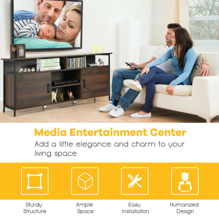 The multifunctional cabinet can be used as a TV stand for placing a TV up to 65", and can also as a side cabinet to display desired items to show your own aesthetics. The open storage cubby doesn't block the sight and makes it easy to carry items. The storage cabinet with doors can block dust and features 3 height-adjustable shelves. Equipped with 2 extra legs at the center, the 65" entertainment center will increase stability and improve load-bearing capacity.