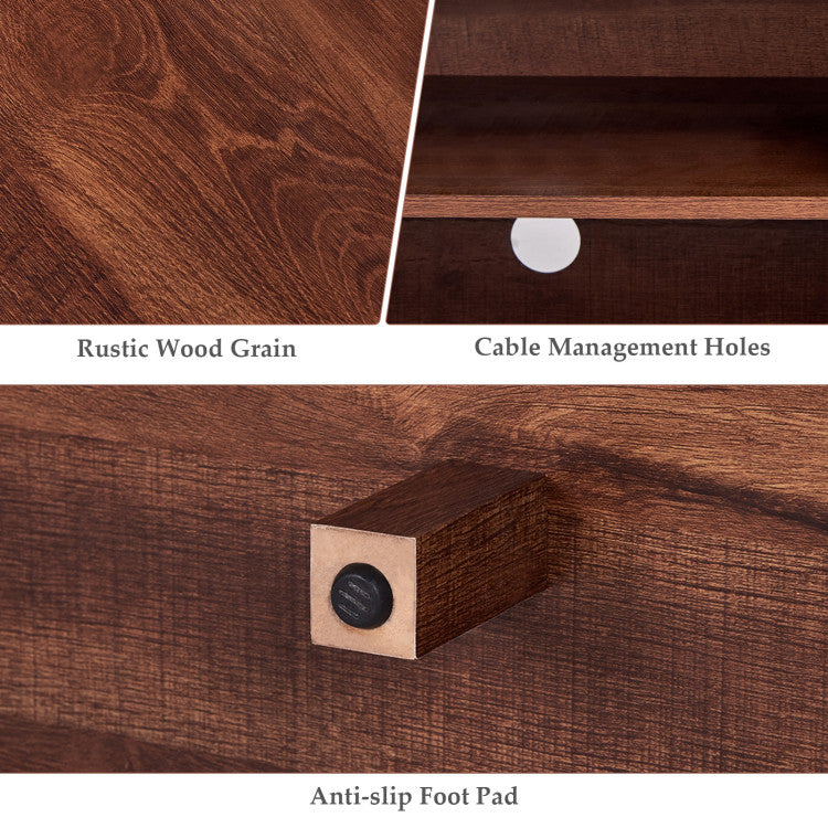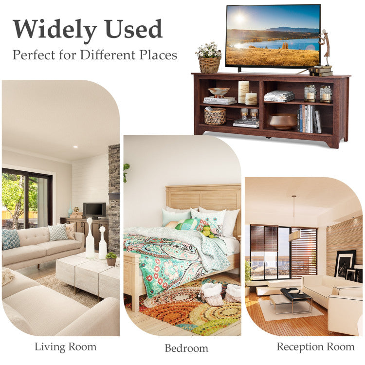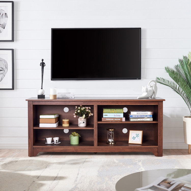 The top can support TVs up to 60 inches, and the adjustable shelves help you storage necessary media or gaming devices. This TV stand is a piece of furniture for your home. With a clean edged top, rectangular legs, the distinctive TV stand creates a warm and charming atmosphere for your home or office. This TV stand is designed to blend into a variety of living and family room settings. With its casual contemporary style, this exquisite collection is a relaxed look that fits anywhere.