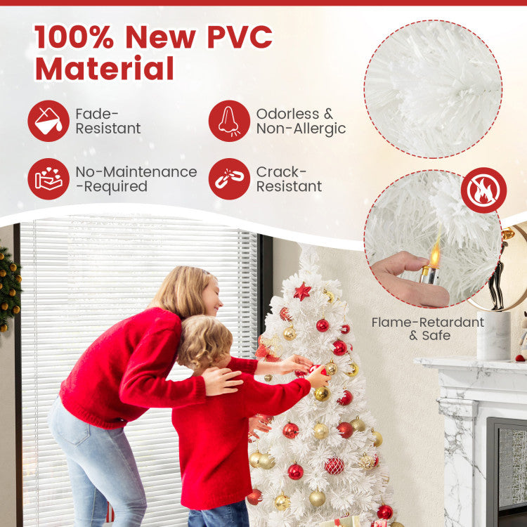 -The snow-flocked design and all-white appearance add a touch of winter wonderland charm to your tree