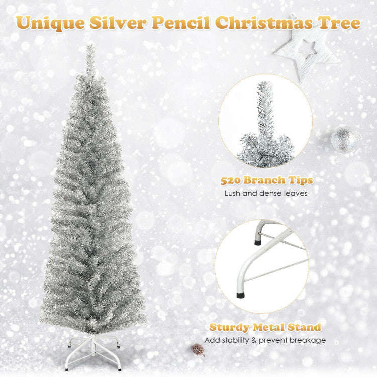 Dense Branches and Realistic PET Needles: The needles of this Christmas tree are made of premium environment-friendly PET, which is absolutely safe to use and makes it look more real. Besides, 105 branch tips will help emulate a full-bodied genuine pine tree. Slim Pencil Body: This Christmas tree is designed as slim pencil, which is unique and space-saving. With its delicate body, the artificial tree is perfect for display in corners, small rooms and areas with limited floor space, adding more excitement and originality to your life. Lightweight and Portable Design: This Christmas tree is equipped with a reinforced plastic foot, which is stable and lightweight. You can carry and store it easily. What's more, it features a short but full shape, which allows you to put it on anywhere, taking little space. Easy to Assemble and Store: Thanks to its compact design, this Christmas tree is easy to assemble, disassemble and store in just a few simple steps. And when you have simply assembled it, you can spread out all the branch tips completely to make the Christmas tree more real and full. Convenient Versatility: Designed with sliver color, this unique Christmas tree will blend perfectly with the winter scenery. And the electroplated craft makes the color of the Christmas tree brighter. Using it can get more festive atmosphere and add a touch of nature year-round. It is ideal for decorating home, office, shops, apartments and more.