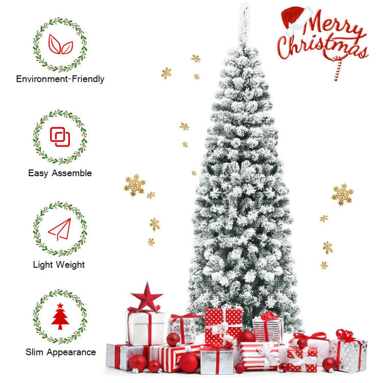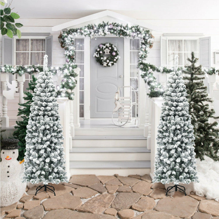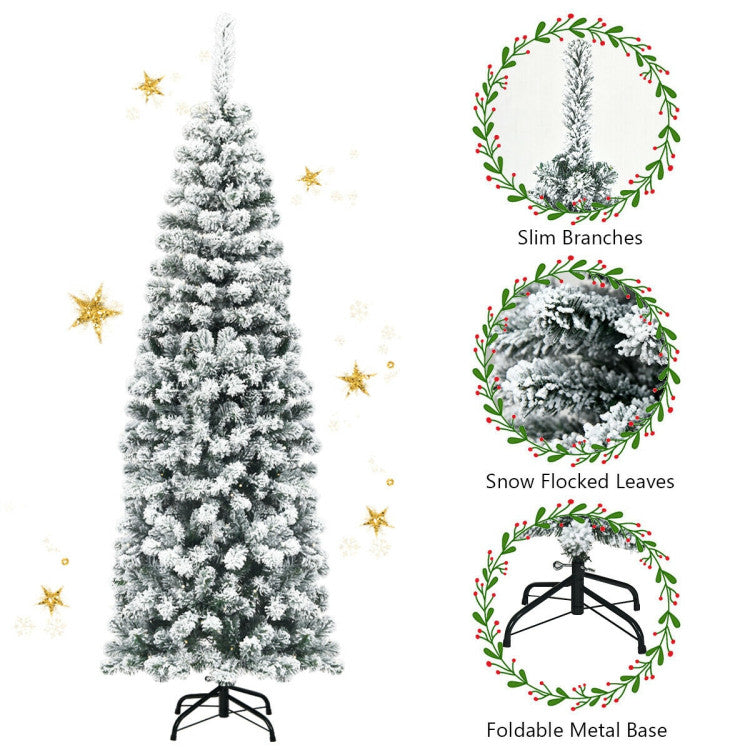 Transform your living room into a unique winter wonderland with the snow flocked pencil Christmas tree.