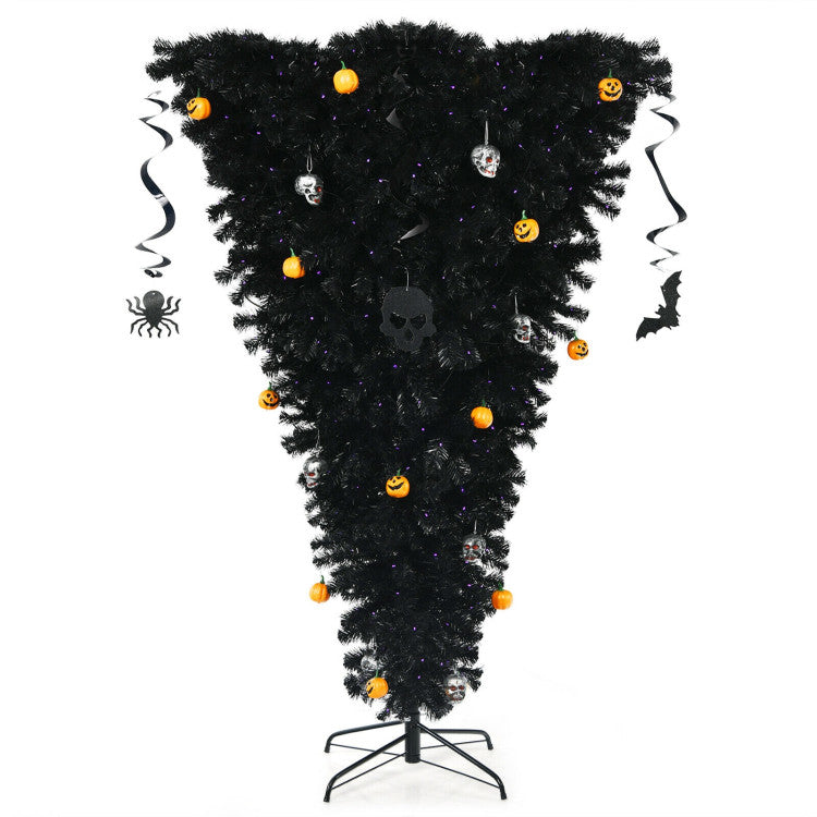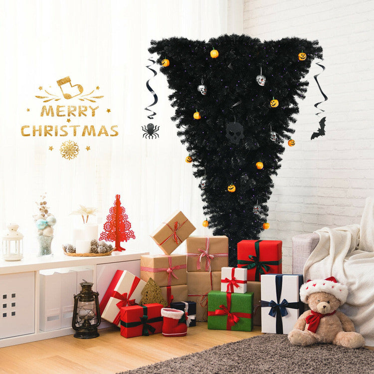 The black artificial pine tree features an upside-down design style and combined with the purple lights will bring you a new holiday experience, which is spooky but full of mystery.