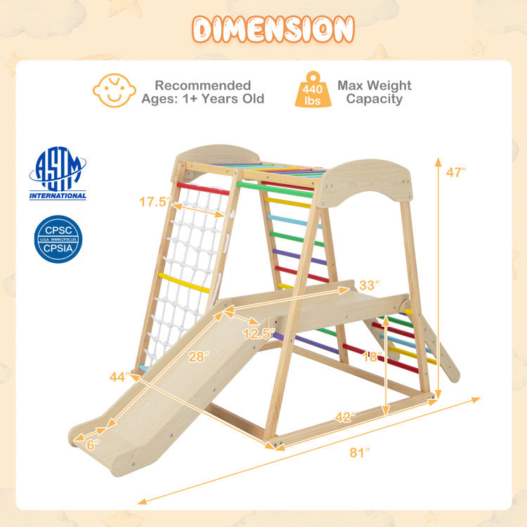 -Monkey bars, waiting area, slide and multiple ladders for different fun