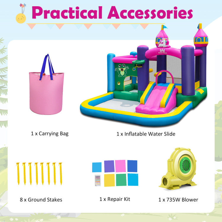 -Jumping area, smooth slide and basketball rim for sports entertainment