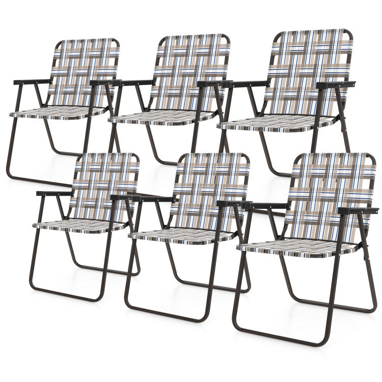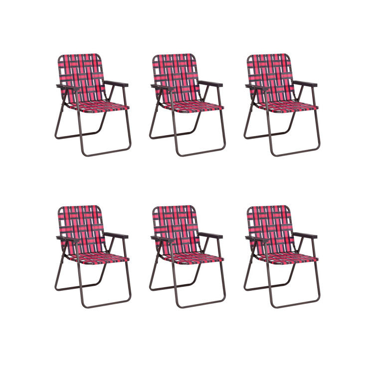 Sturdy and Stable Steel Frame: This beach chair is made of solid and reinforced steel. It can hold up to 265 lbs. With an anti-rust coating, it can be used for a long time. Lightweight Webbing: The chair is made with high-quality fade-resistant webbing. The webbing is lightweight, durable, soft and comfortable. Easy To Set Up: The foldable design allows you to use this chair immediately when you open this folding one without the hassle of assembly. It is easy to set up and no tools are required. Easy To Store And Carry: This chair is lightweight and can be folded into small and convenient travel size. You can store it at home or take it in the car trunk for camping. Wide Use: Weather-resistant materials make it particularly well-suited for outdoor concerts, festivals, the beach and parks. 6 chairs are enough for your whole family.