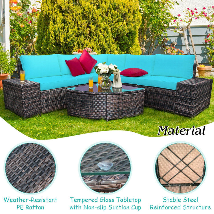 | Material | PE Rattan, Steel, Tempered Glass, Polyester fabric, Foam |