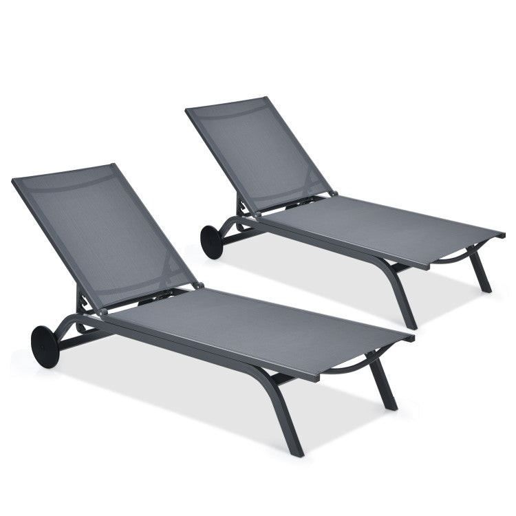 The adjustable backrest of chaise lounge with six positions will satisfy your different needs of reading, lying and sleeping. Made of solid aluminum and premium fabric, the frame of the lounge chair is sturdy and the seat is breathable. 2 wheels on the back allow for easy movement, which will also stand firmly. It is a perfect combination of practicality and aesthetics, which suits for various occasions such as poolside, patio, porch and seaside. And this outdoor chaise lounge chair has a simple structure and allows you to assemble it in short time.