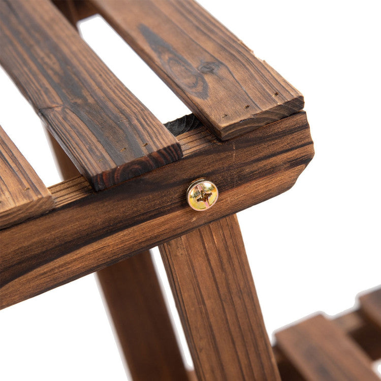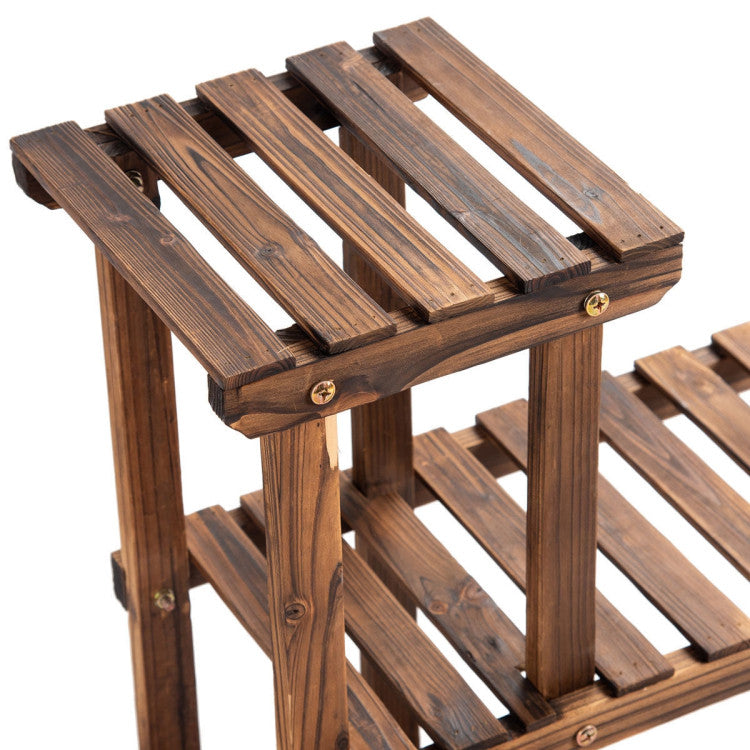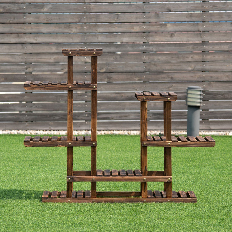 Equipped with solid and weather-resistant wood construction, the plant stand can be placed at your balcony, living room, garden or patio etc. You can not only display beautiful flowers and vigorous potted plants but also store or exhibit your photos, trophies, books and other beautiful artworks. Multi-layer high and low design makes full of space to highlight all plants. Each rack provides sufficient space to accommodate plants. And the hollow-out design makes it convenient for you to water plants.