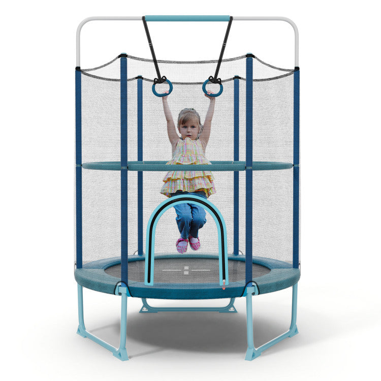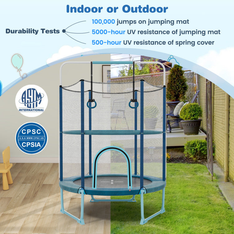 -Toddler trampoline with detachable gymnastic bar and rings for different fun