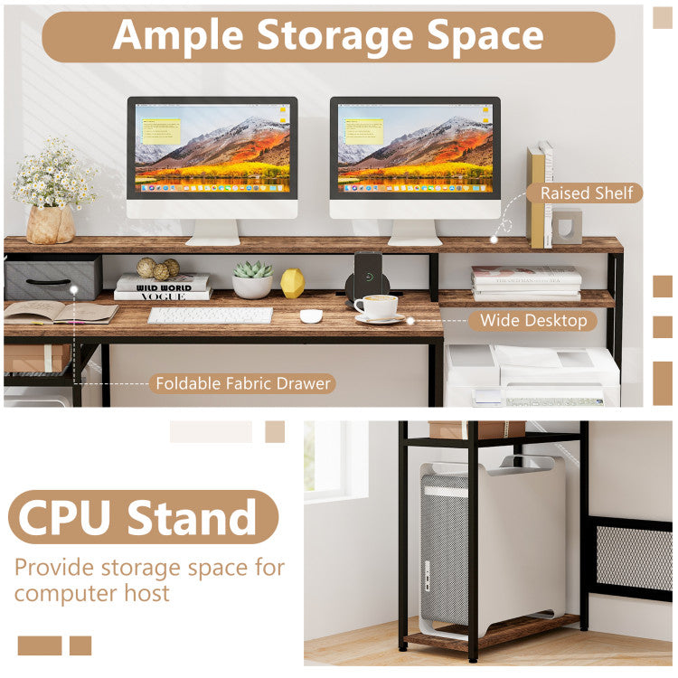 -Foldable fabric drawer & printer shelf keep office supplies in order