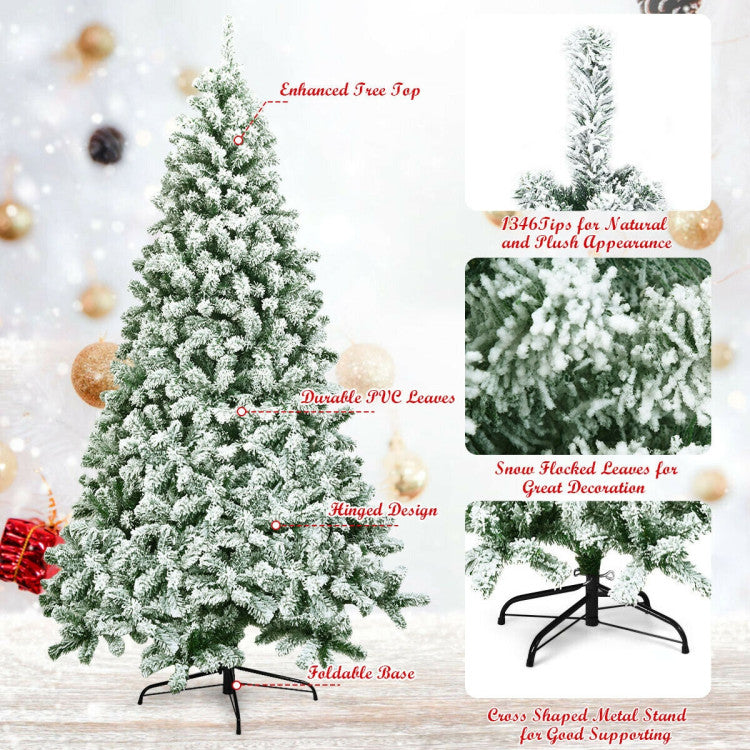 Snow Flocked Xmas Tree: Snow flocked branches create a unique wintry feel, making this 7.5 ft Christmas tree an eye-catching addition to any room during the holidays. It will always be the most attractive thing at your Christmas party! May the season bring much pleasure to you! DIY Decoration Adds Festival Fun: The tree comes with simple and elegant branches, giving you the option to decorate it with your family member. You could use your imagination and creativity to make it a unique festival decor for your Christmas party. Solid and Stable Metal Base: We adopt the high-quality steel base to ensure the overall steadiness, which is foldable and rust-resistant. What’s more, each foot is connected with one metal tube on the bottom for steady support and the triangular structure could offer more safety stability. The equipped plastic pads could prevent the floor from scratch. Detachable Design for Easy Storage: This Christmas fir tree comes in 3 parts and the branches can be folded for easy storage. When you do not need it for decoration and want to store, you just need to take it apart and fold all the branches, and then put all the components into a box. It is space-saving for you to store. Wonderful Holiday Gift: Whether using this tree for the holiday party or adding a touch of nature to your home year-round, this pine tree will be the best choice for your Christmas decoration and increase festival atmosphere. You can also put lots of Christmas decorations on the tree freely to make it more beautiful.