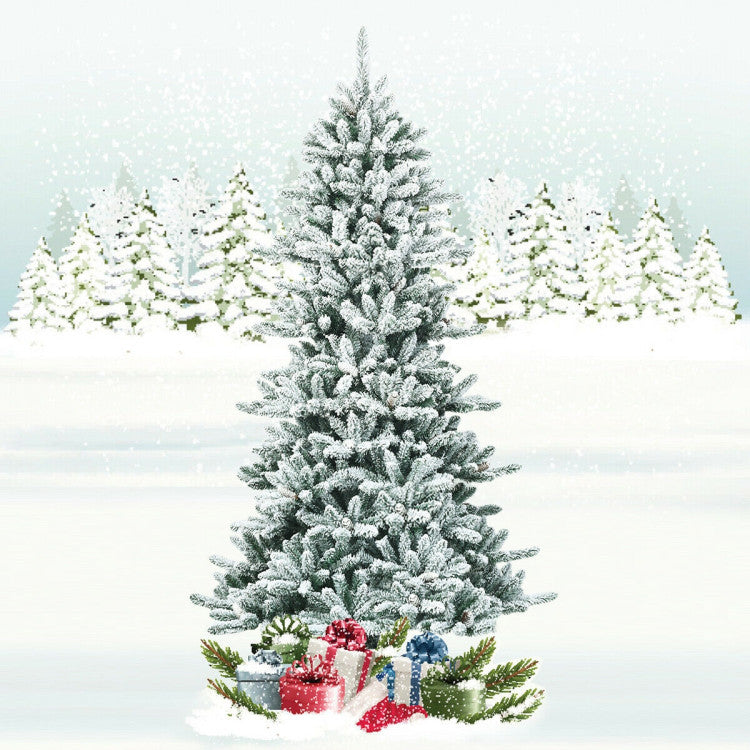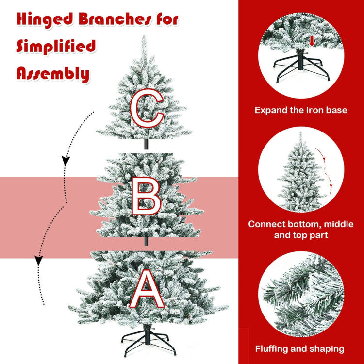 The snow-flocked Christmas tree is a perfect decoration to create a winter wonderland while letting you get in the Christmas spirit.