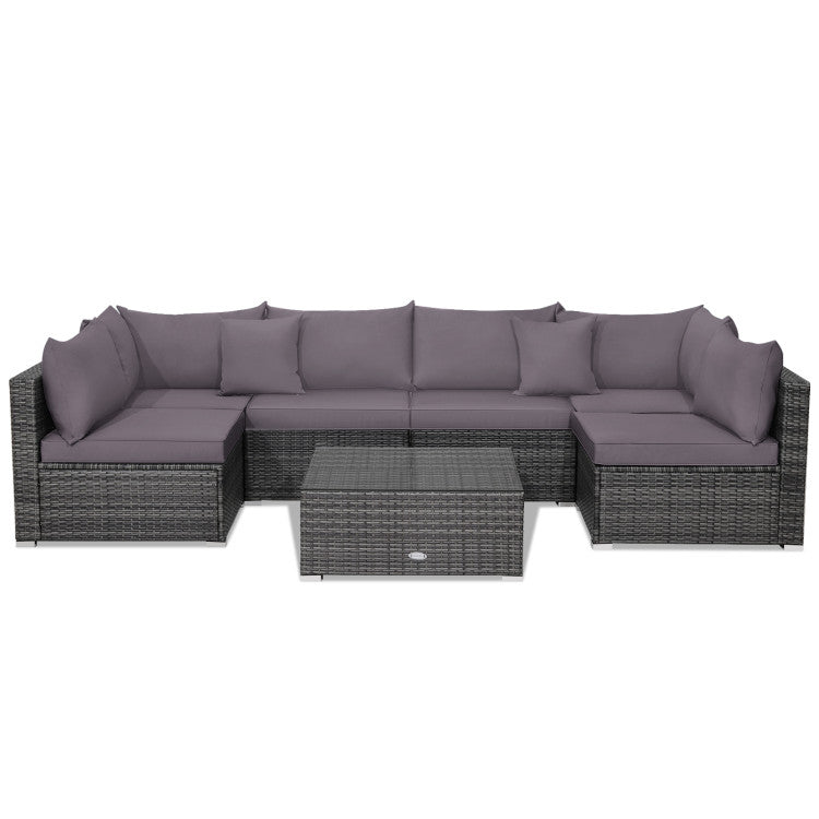 Material | PE rattan, steel, tempered glass, polyester, cotton, sponge |