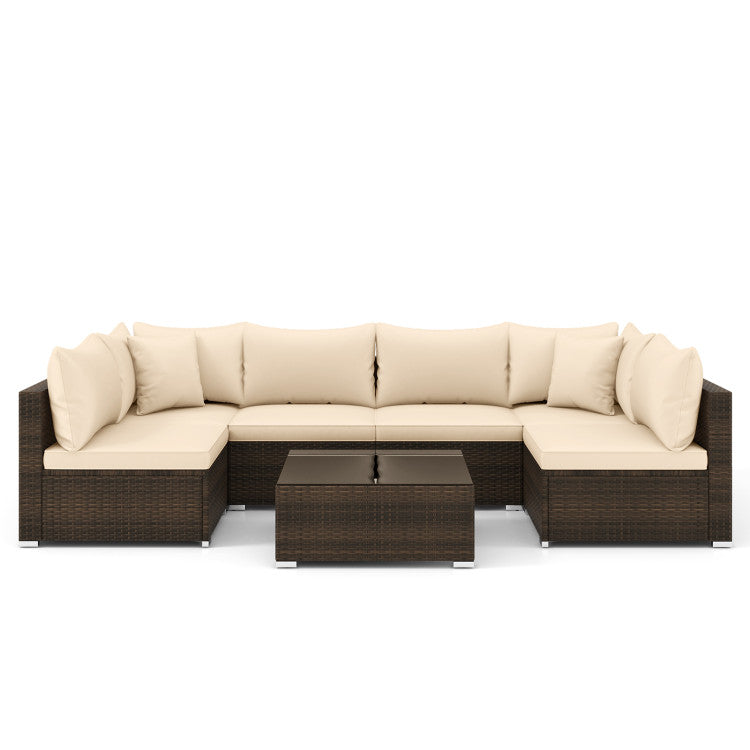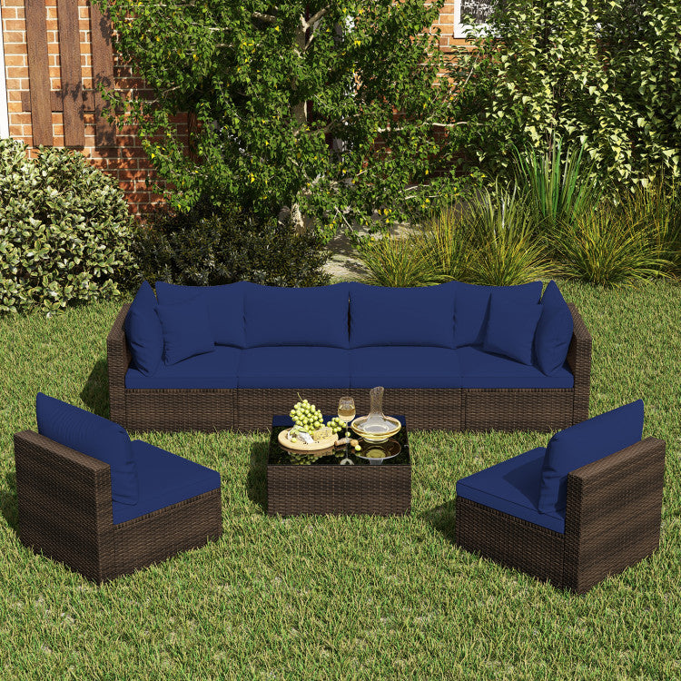 | Material | PE rattan, steel, tempered glass, polyester, cotton, sponge |