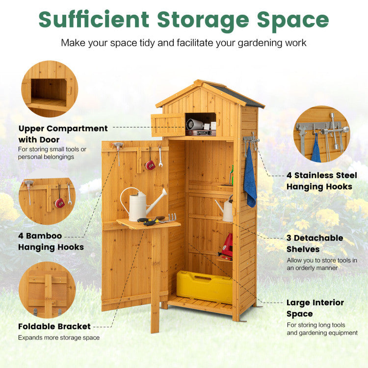 -The wooden door latch keeps your garden tools secure, easy to open and close the door