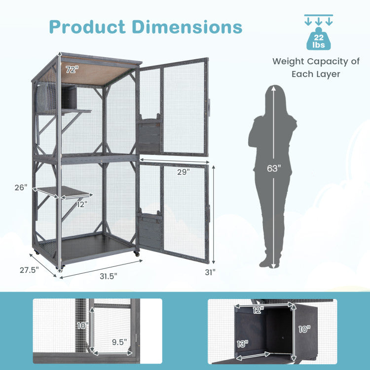 -Comes with 4 wheels for easy mobility, move the cat house effortlessly around
