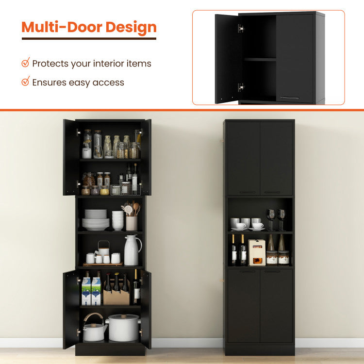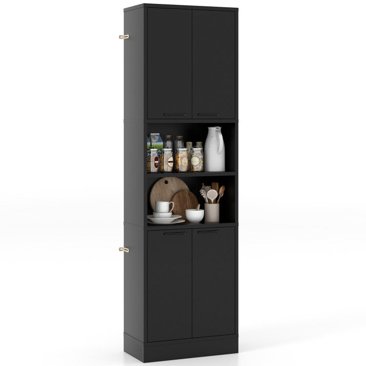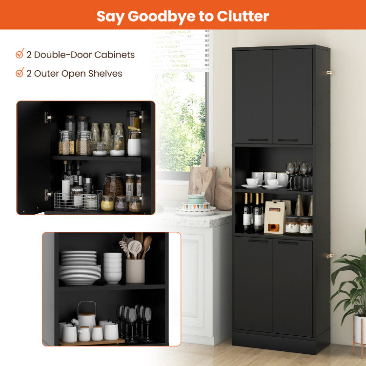 -2 double-door cabinets and 2 outer open shelves ensure enough storage space