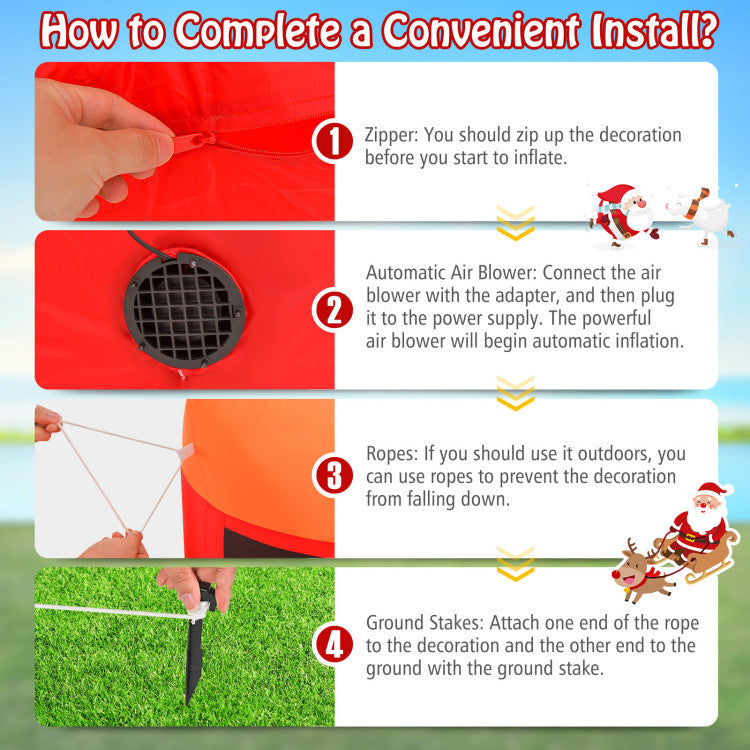 -Ropes, stakes and the water bags help the decoration stand firmly