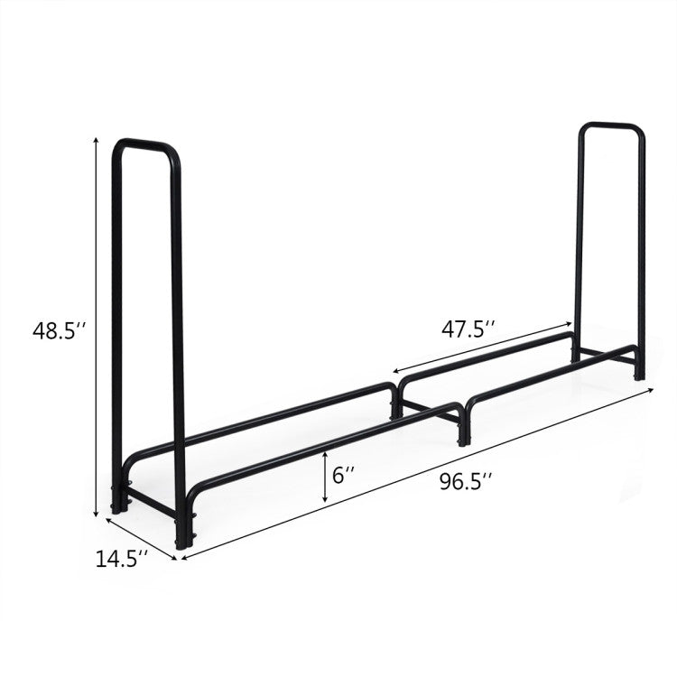 Made of heavy-duty tubular steel frame, this sturdy firewood rack in a powder coated surface is rustproof and durable enough to ensure all year round use. And the sufficient distance from ground keeps the lumber from the dampness. More, the firewood rack is sized at 96.5" x 14" x 48.5" (L x W x H), which offers large space to organize lumber. You can store the log with this firewood rack in tool's room, garden or under the roof. Also, it can be used to keep the kindling handy near the fireplace or fire pit outdoors and indoors.