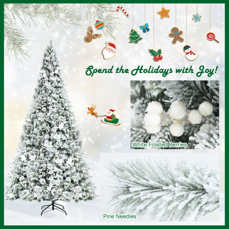This upgrades Christmas tree is plumper and bigger, which allows you to decorate various kinds of items and put many gifts below the tree. The high-quality natural leaves are fire-resistant, non-allergic, and non-odor, which ensure safe touch for your kids and pets. And the snow-flocked tree is pre-decorated with 504 white berries and lily-white poinsettia flowers, adding a luxurious and elegant look. And the metal stand offers high stability and sturdiness to help the tree stay straight. The Christmas tree will accompany you and your family for many happy Christmases!