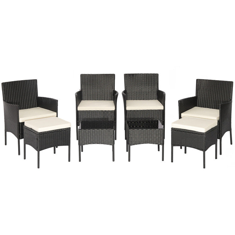 -Including 4 Single chairs, 2 Ottomans, 2 Coffee tables, 4 Single chair cushions, 2 Ottoman cushions and Instruction