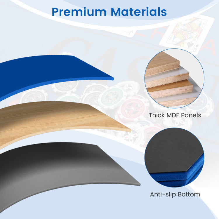-The 48" poker tabletop comfortably accommodates up to 8 players