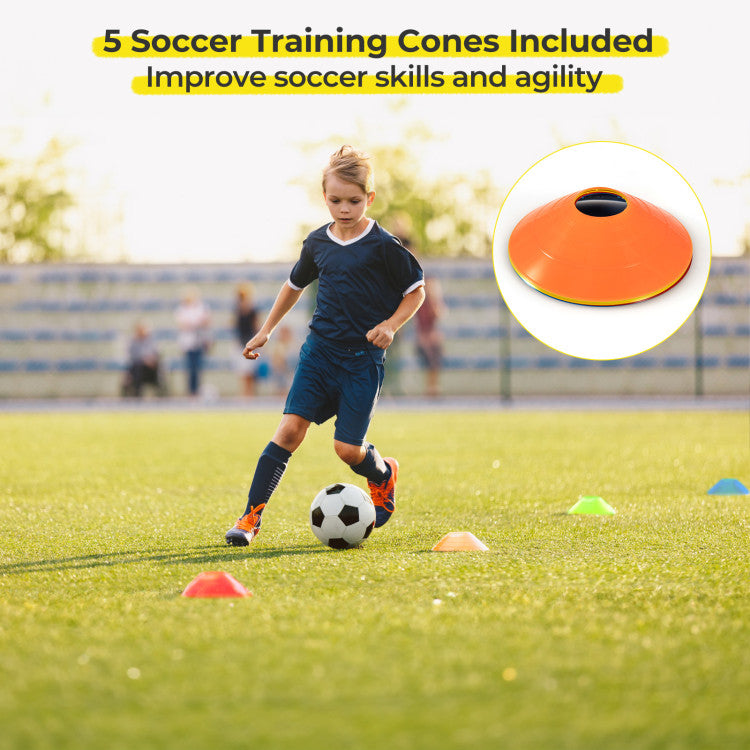 -Includes 5 soccer cones for agility training and more