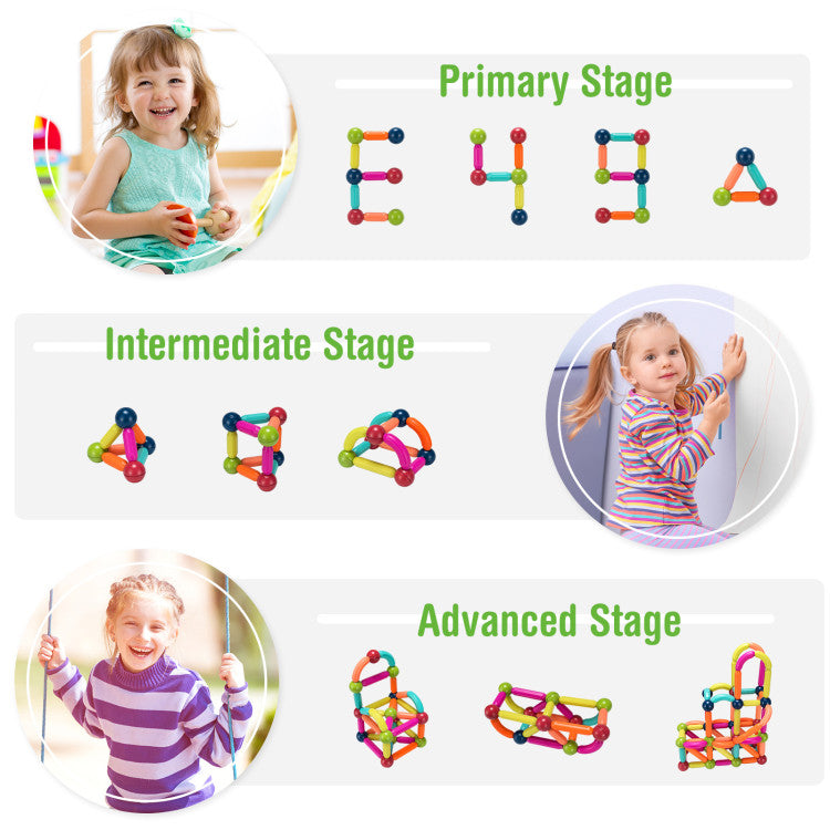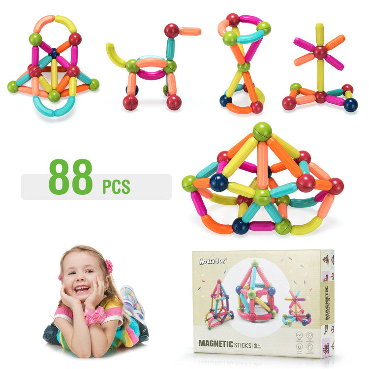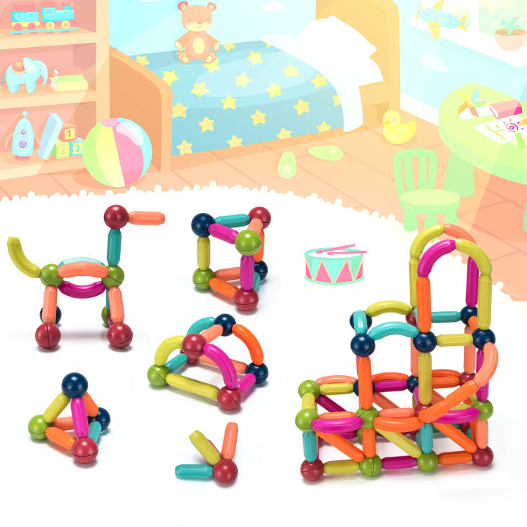 It comes with 18 long bars, 32 short bars, 16 curved bars, 22 balls and 1 storage box. Kids can use balls and rods to create different models. You can use the storage box to conveniently carry and store it. Besides, strong magnetism and easy-to-grip design make it easy to connect and disconnect. Rounded edges protect the kid's hands. Moreover, the set made of ABS material is durable, non-toxic and safe to use. The ball is more than 1.2". Kids won't accidentally swallow it. Furthermore, it's ideal for living room, playroom, kid's room, kindergarten, etc. The magnetic set can promote kids' creativity and imagination. On the other hand, it's beneficial to kids' logic ability, color cognition, curiosity and thinking.
