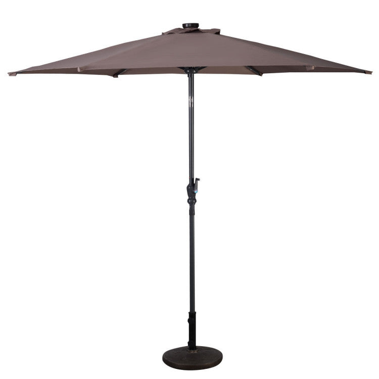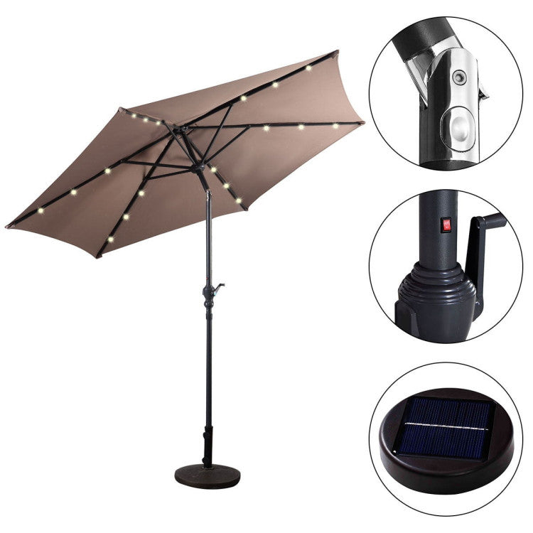 Energy Saving with Solar Power Design: Equipped with the solar panel at the top of the pole, this patio umbrella uses solar power instead of electric energy to support the power demand of LED lights, which is clean and environmentally friendly. Tilt Design for Omni Bearing UV Protection: 9' large size of the umbrella cover will block out more UV to prevent sunburn. With the top tilt of the air vent design, you will never feel the discomfort of shining caused by solar displacement but enjoy the soft wind. Crank Lift System for Easy Operation: Never be troubled by the height problem. This garden parasol is equipped with a crank lift system so that you can open it with less effort. Rotary the rocker slowly and evenly and it is easy to raise and lower even for kids and the elderly. Romantic Atmosphere with Soft LED Lighting: With 18 lights shining in the sky, it is perfect to have a romantic night with your lover. As light is in the just right brightness, the LED umbrella will never make you dazzling but creates a wonderful atmosphere. Easy Assembling with Clear User Guide: The market umbrella is easy to assemble with 2 steps. Tighten the solar panel and insert the supporting pole then use it. Combined with the lightweight of 15 lbs, you will never feel tired to carry.
