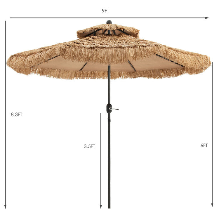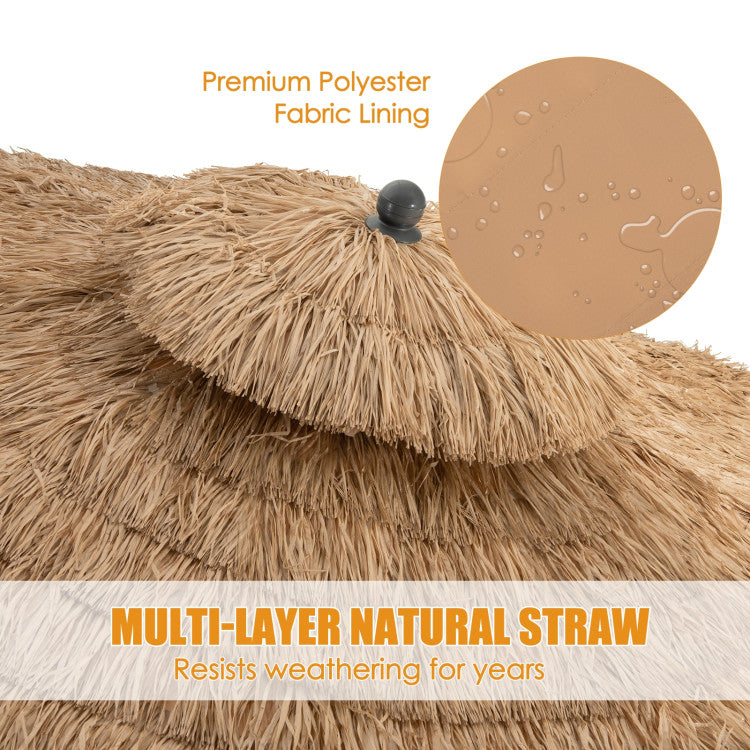 This tiki umbrella has a tropical style and a beautiful nine-tier straw top that will complement the beach, backyard or poolside. In addition, the weather-resistant straw will provide you with more perfect shade and protect your skin from severe sun damage. The umbrella pole is fitted with a manual crank for easy opening and closing the umbrella, and a tilt button allows you to easily tilt the umbrella to 0-30° to block the sun from different directions. This thatched umbrella is made of durable PE fabric for long-term use. And it is equipped with 8 strong metal ribs to enhance great support. In addition, the 2 tier ventilation design accelerates air circulation and makes the environment under the umbrella cooler. Hence, this patio umbrella will be the perfect companion to accompany you through the hot summer! The umbrella is recommended for use with an umbrella base. Note: Umbrella base is not included in the package.