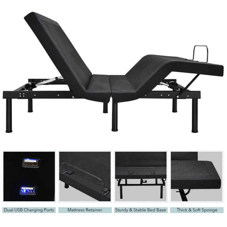 Plus, you can independently control the head and foot tilt adjustment to satisfy your different needs. This bed base is constructed with sturdy steel and durable fabric for longevity. Combine with memory foam and a hybrid mattress, it will create a comfortable sleeping experience. The folding design is to save space as you store it. Moreover, the dual USB ports provide you with great convenience. And it also has a retainer bar to guarantee the mattress stays in place.